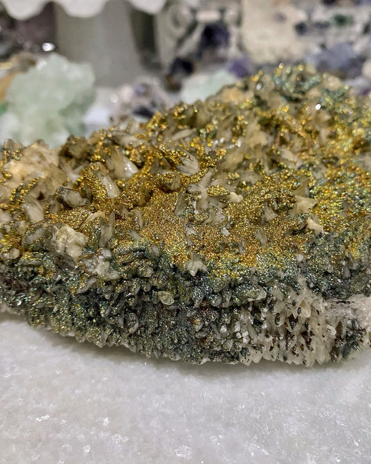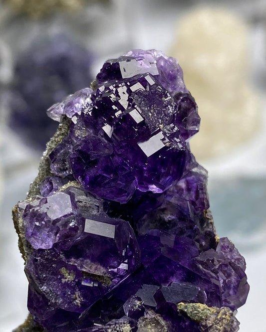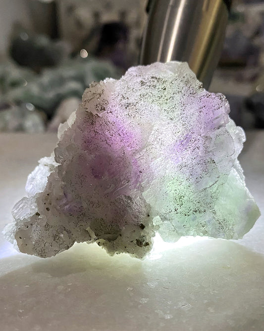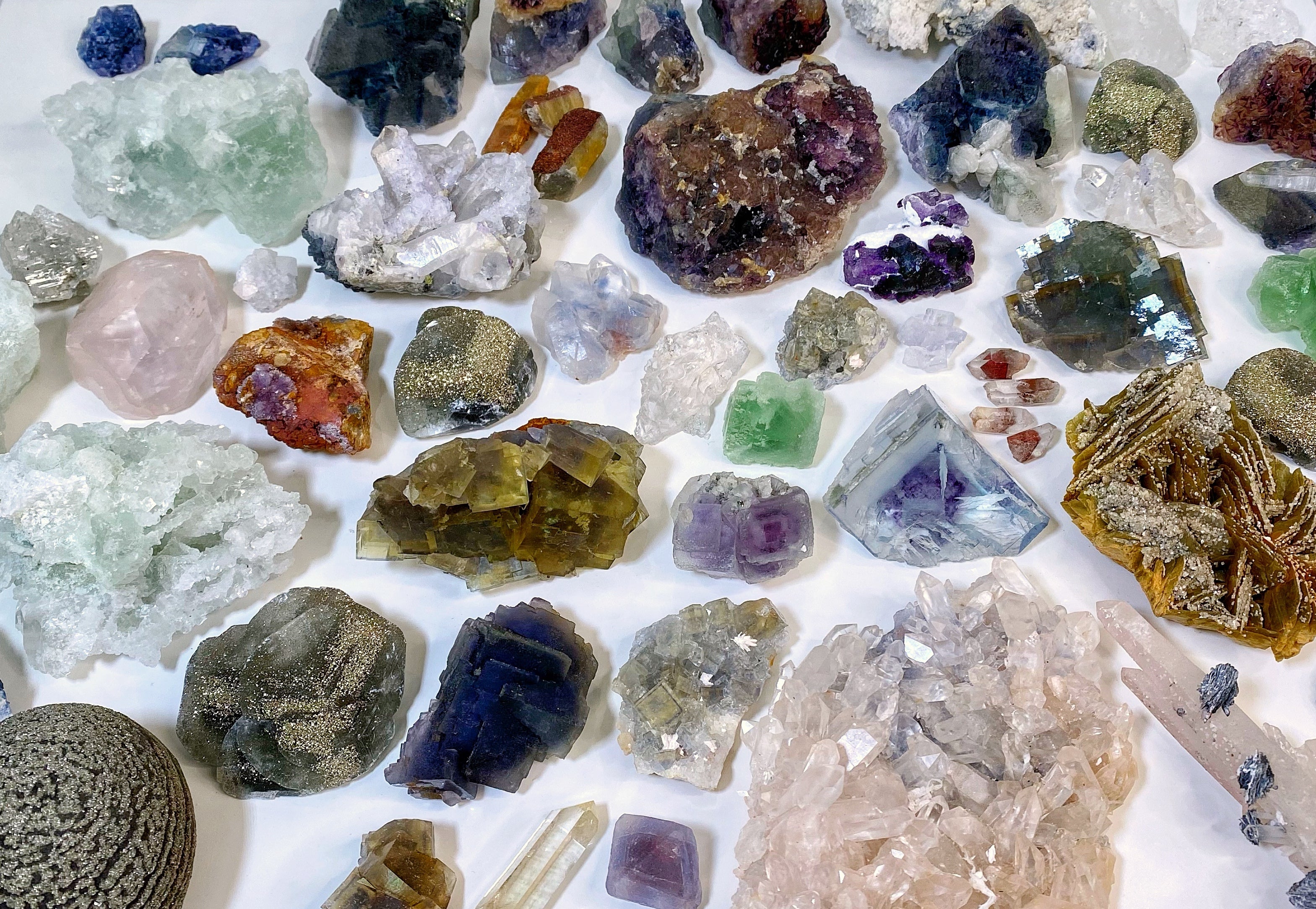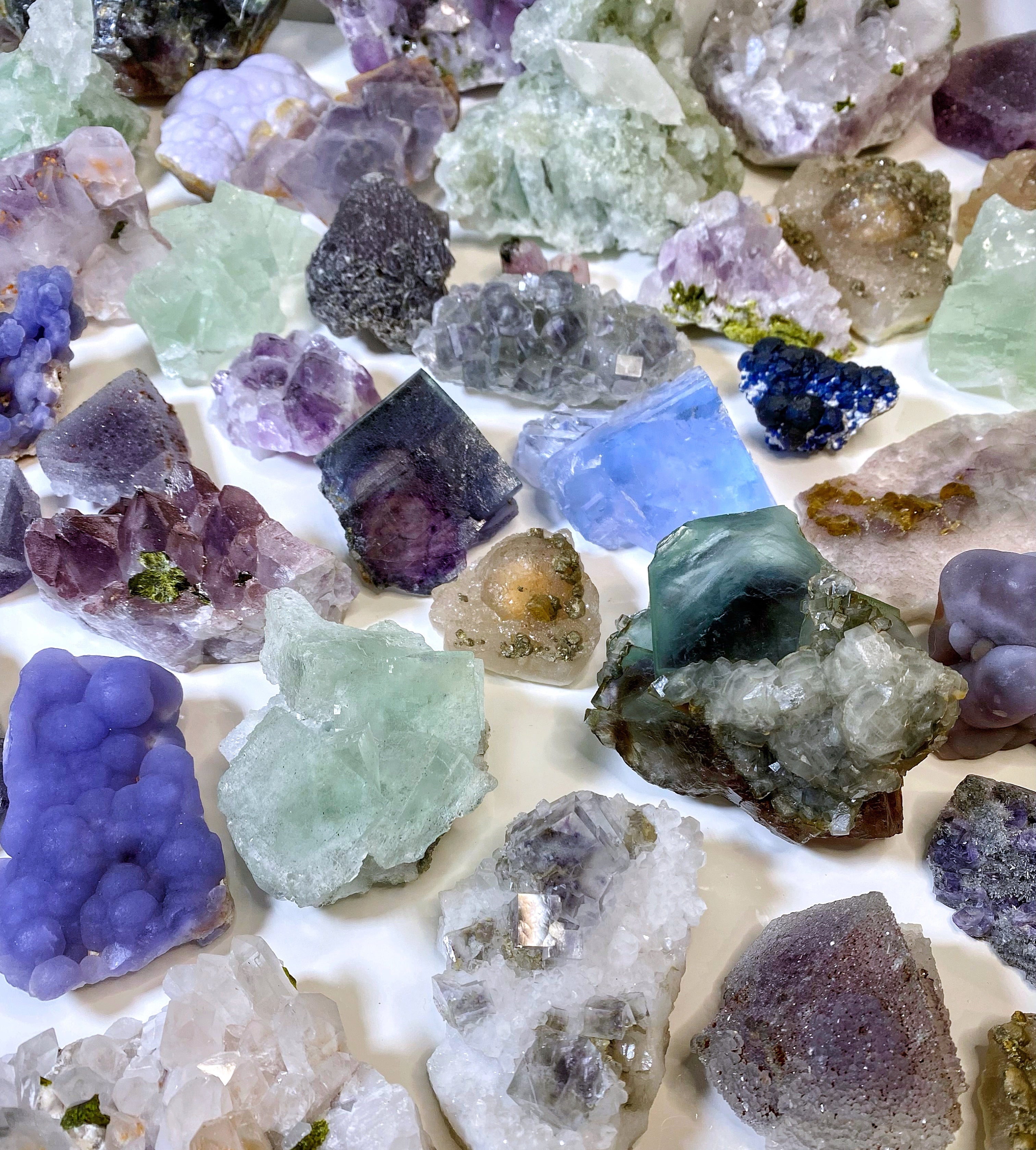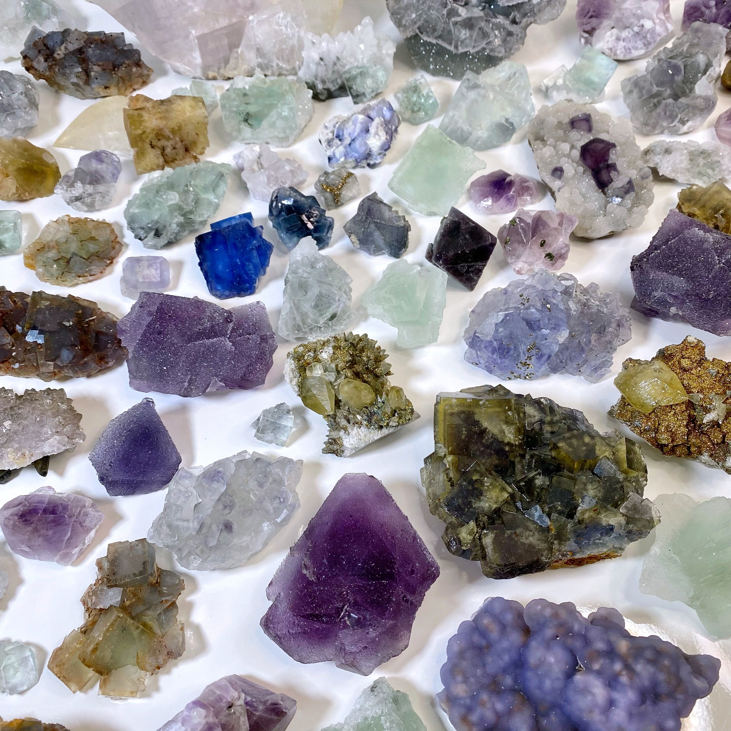 We specialize in unique collector grade fluorite mineral specimens that are not commonly found. Each crystal is curated with intention and are pieces we would want for our own collection too. You'll often find one of a kind, colorful and sparkly crystals here.