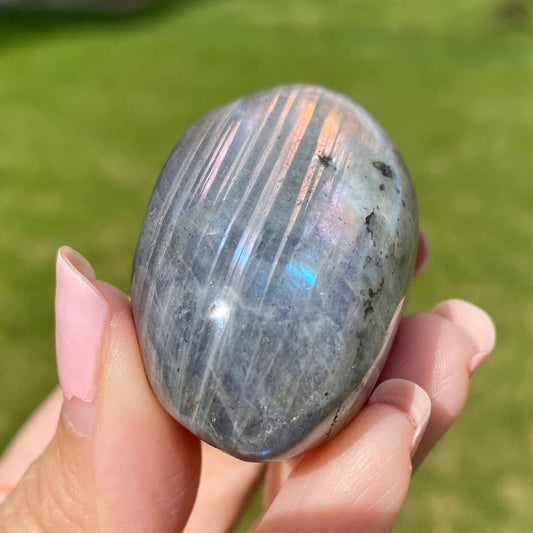 Blush Peach Pink Purple Yellow Flash Labradorite Palm StoneRegular price $10.00 USDRegular priceUnit price per-