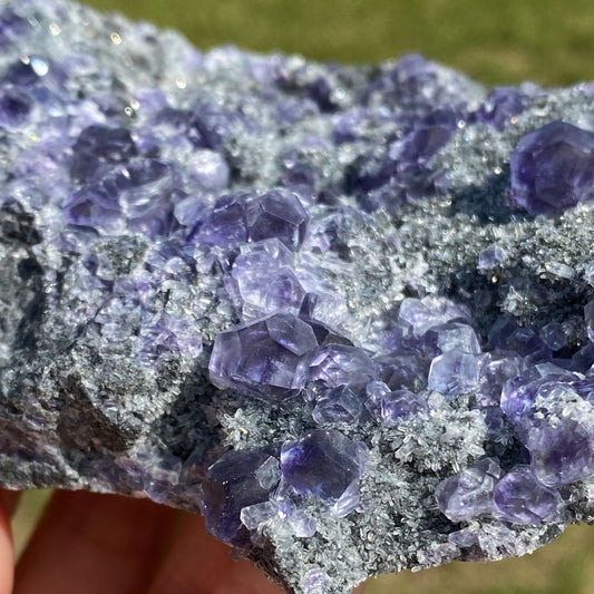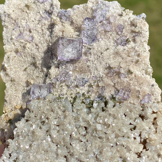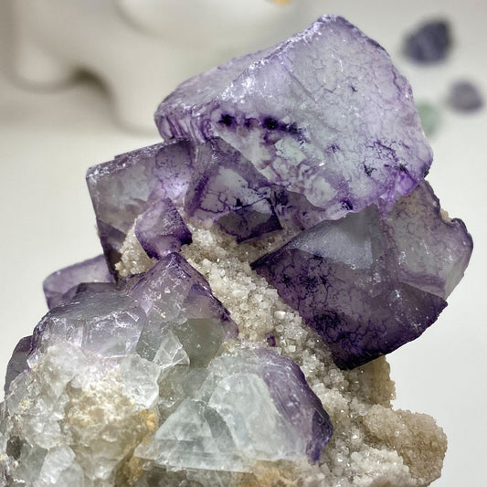 Purple with Dotted Edges Cubic Fluorite on Quartz ClusterRegular price $39.00 USDRegular priceUnit price per-