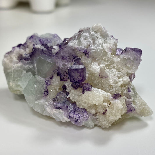 Light Green with Purple Patterns Cubic Fluorite and Quartz ClusterRegular price $37.00 USDRegular priceUnit price per-