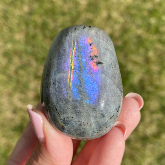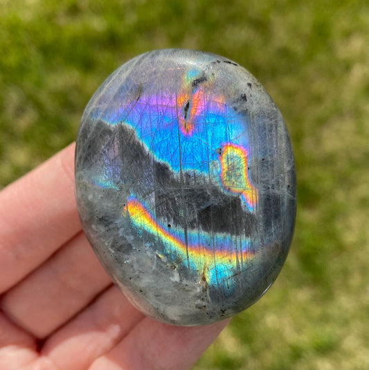 Labradorite Palm Stone Rainbow Dreamscape Flash