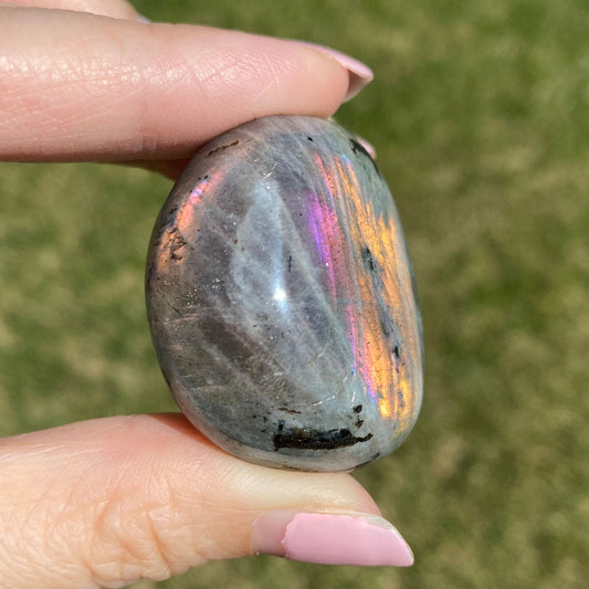 Labradorite Palm Stone Orange Yellow Pink Flash