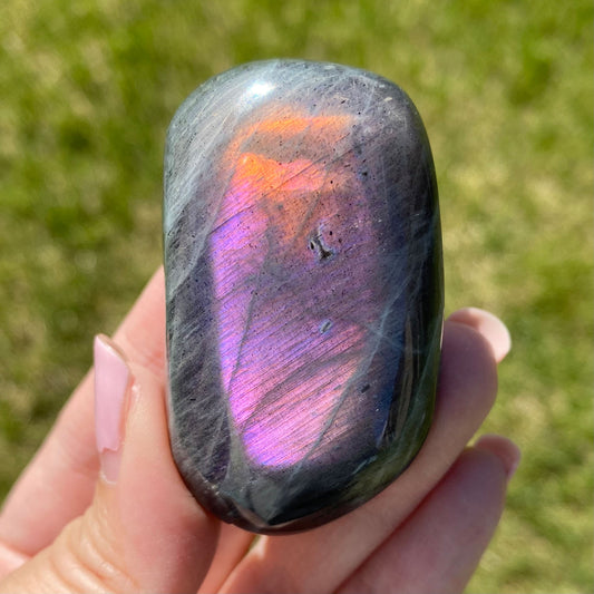 Blush Peach Pink Purple Yellow Flash Labradorite Palm Stone