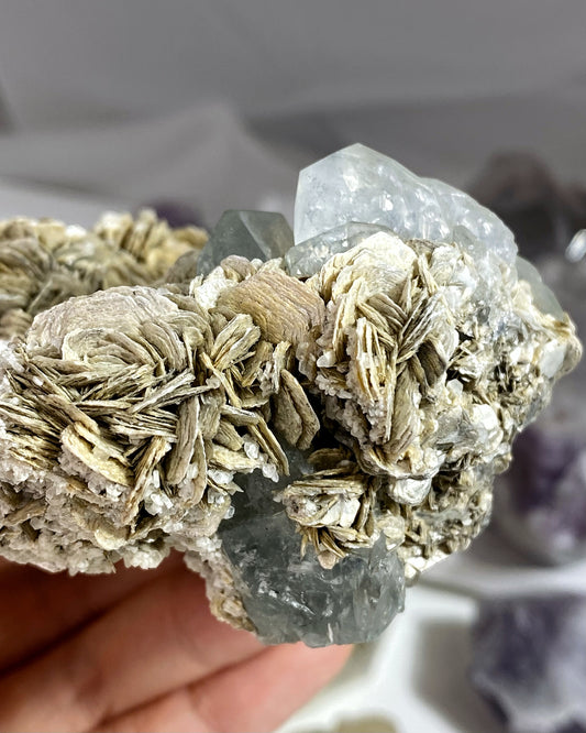 Blue Green Polyhedral Fluorite with Sparkly Quartz