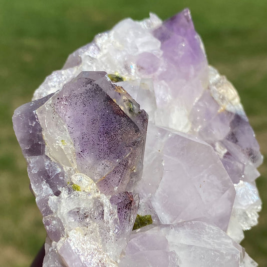 Amethyst Cluster with Hematite Phantoms and Epidote