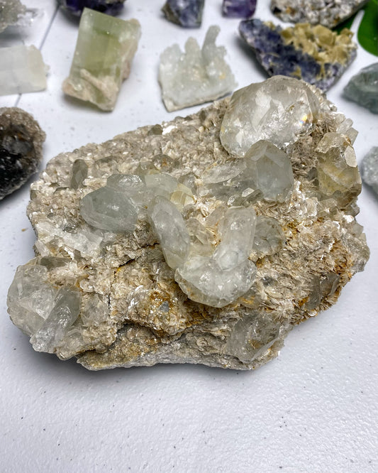 Green Cubic Sugar Fluorite with Quartz Statement Piece