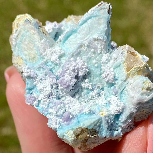 Pastel Dreams Baby Blue Gibbsite & Purple Gypsum on Calcite
