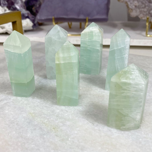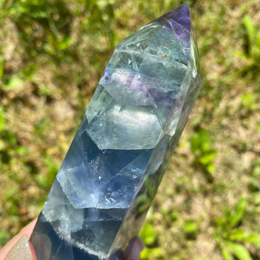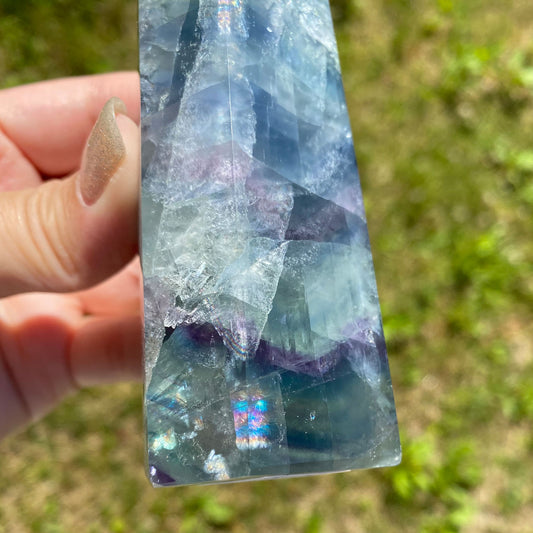Blue Green Purple Fluorite Tower with Lots of Rainbows