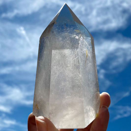 Large Clear Quartz Tower with Iron and Chlorite Inclusions