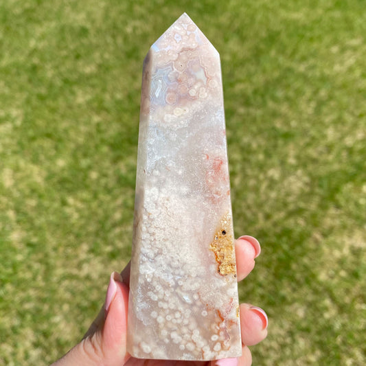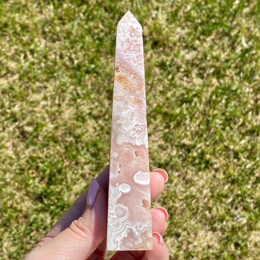 Pink Amethyst Flower Agate Tower 7" Statement Piece