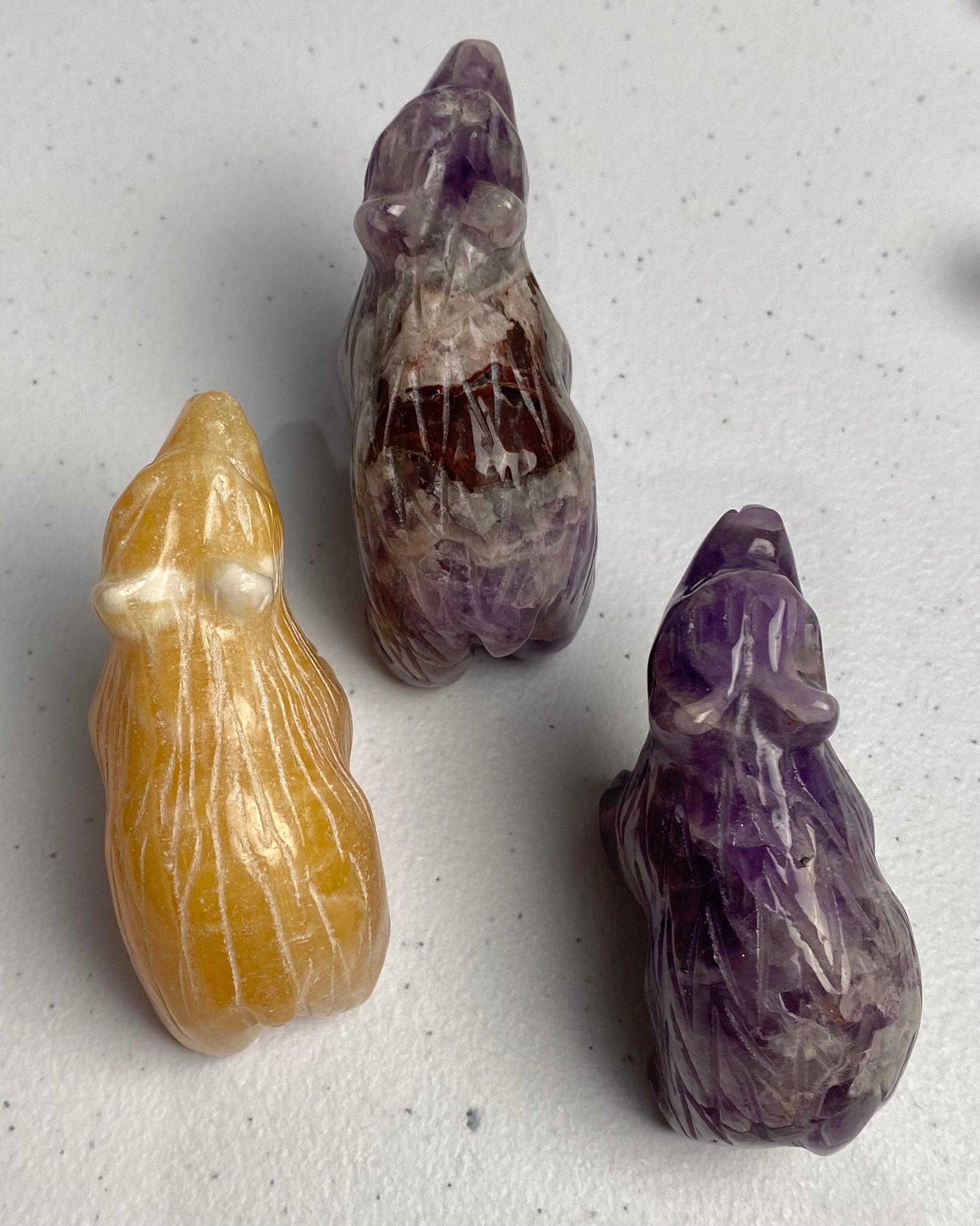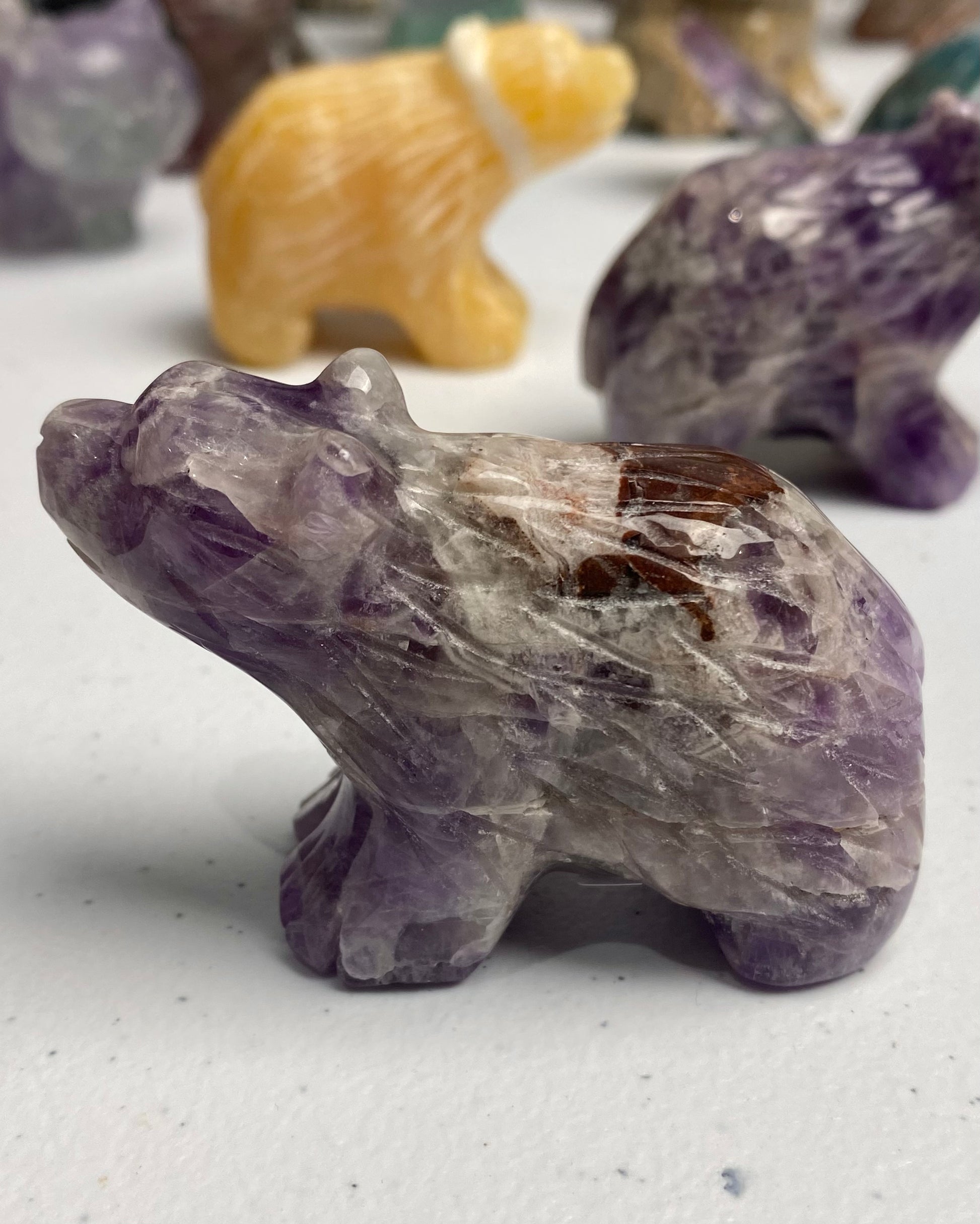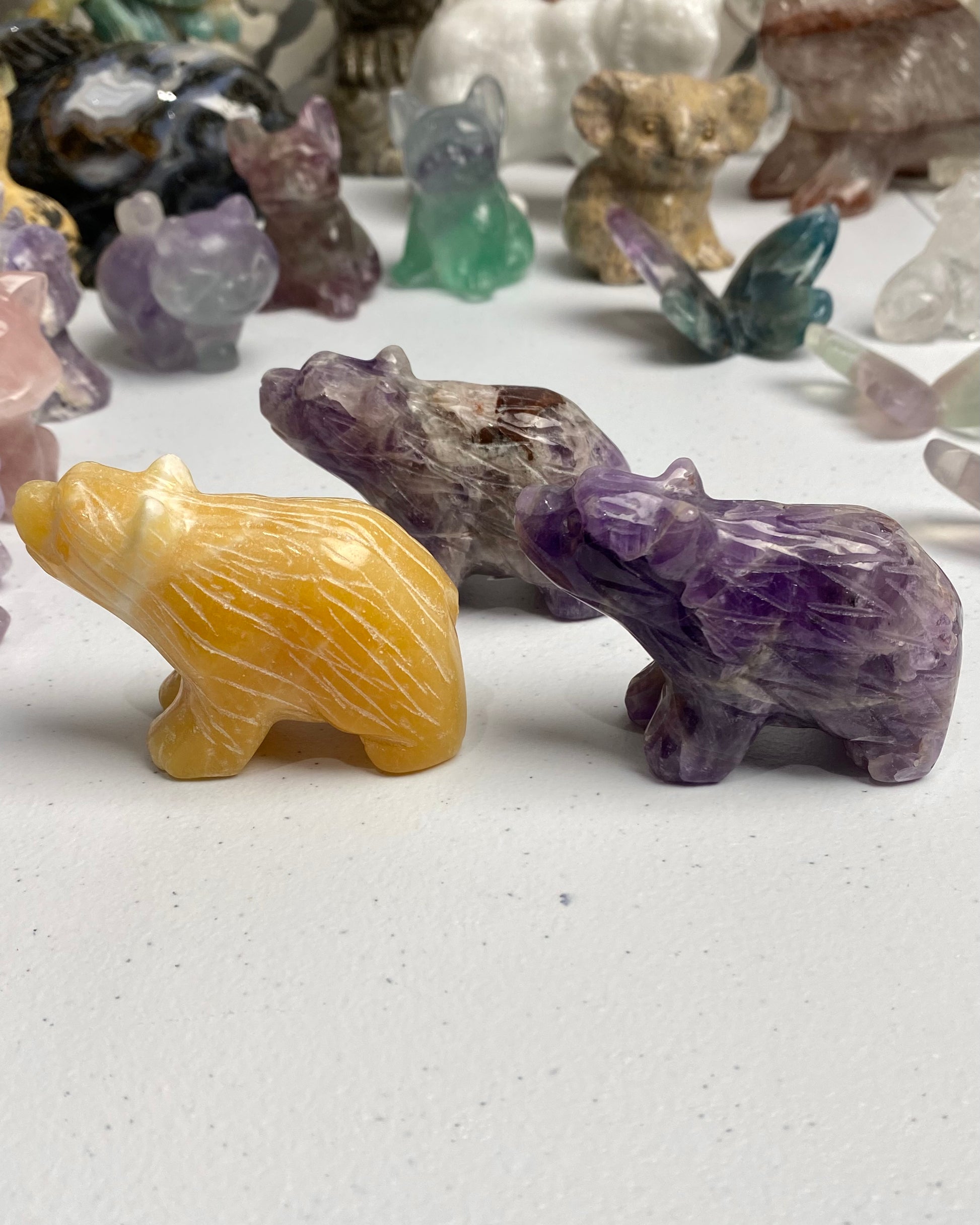 Cute bear carving in different crystal materials. Please choose the one you'd like.